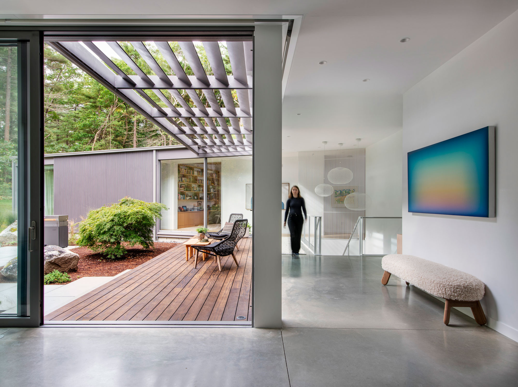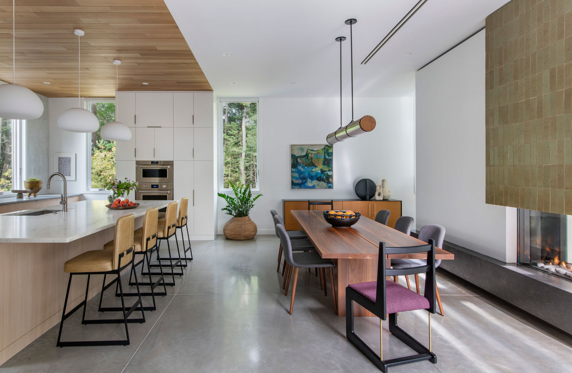 This adventurous family of five bought a lovely 2-acre property in Dover, Massachusetts, and embarked on building a new home. Though the owners were coming from a house with traditional style, they kept an open mind when they hired Flavin Architects to design their dream home.